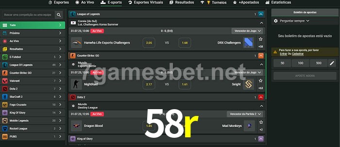 A aposta 58r oferece aos jogadores a experiência mais conveniente de apostas em eSports!